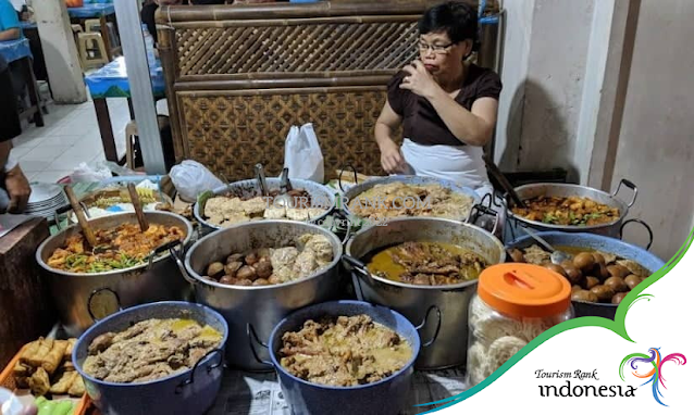 Tak kalah enak dengan Gudeg Cakupan Batas Kota, Gudeg Ibu Kota juga patut Anda cobain saat kulineran malam hari di Yogyakarta. Variasi lauknya juga lumayan lengkap, ada telur ceplok, gorengan, sate usus, krupuk, dan lainnya.